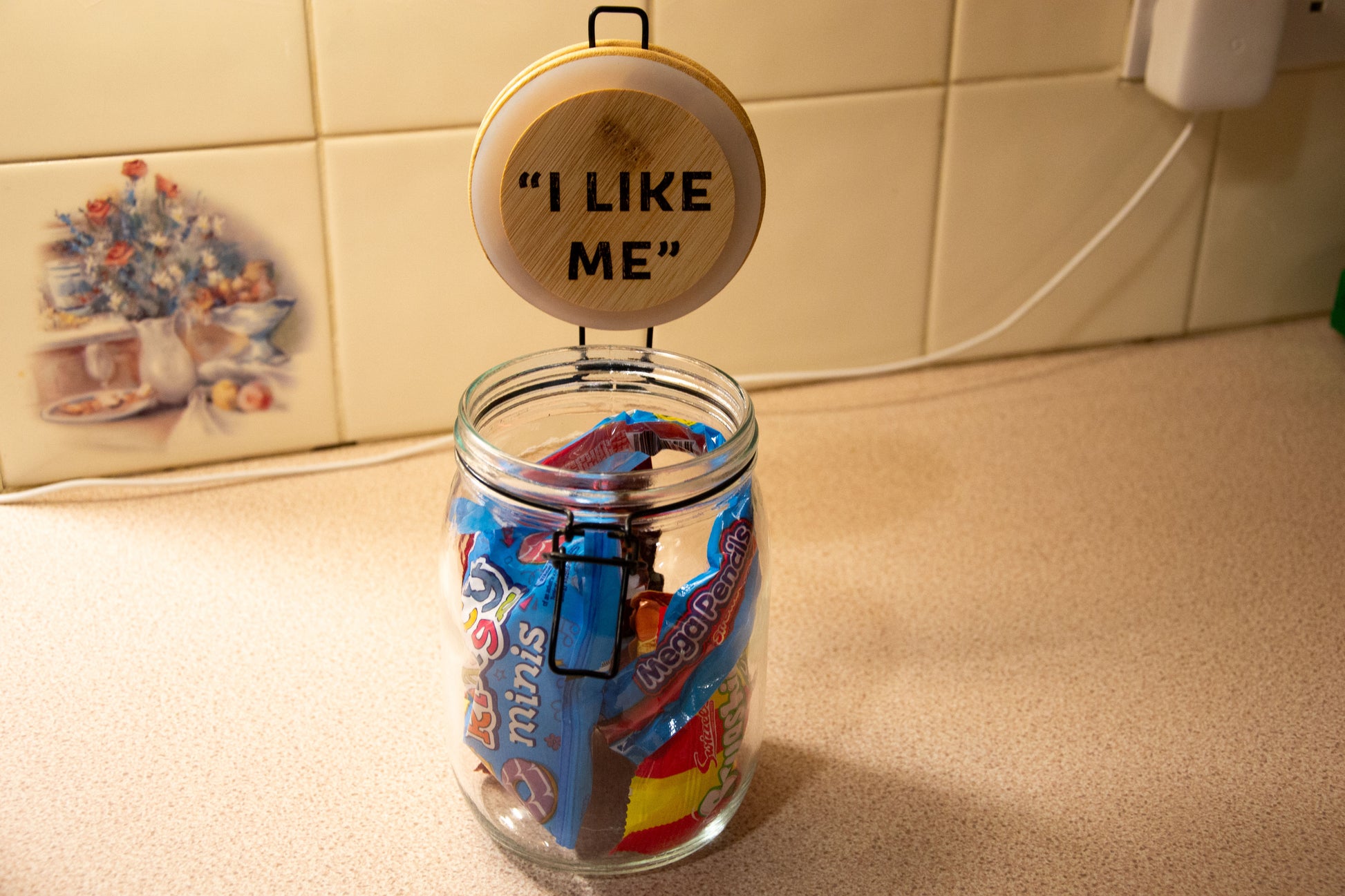 John Candy Jar - Glass Candy/ Sweet Jar with Bamboo Lid - w/ Personalise quote option