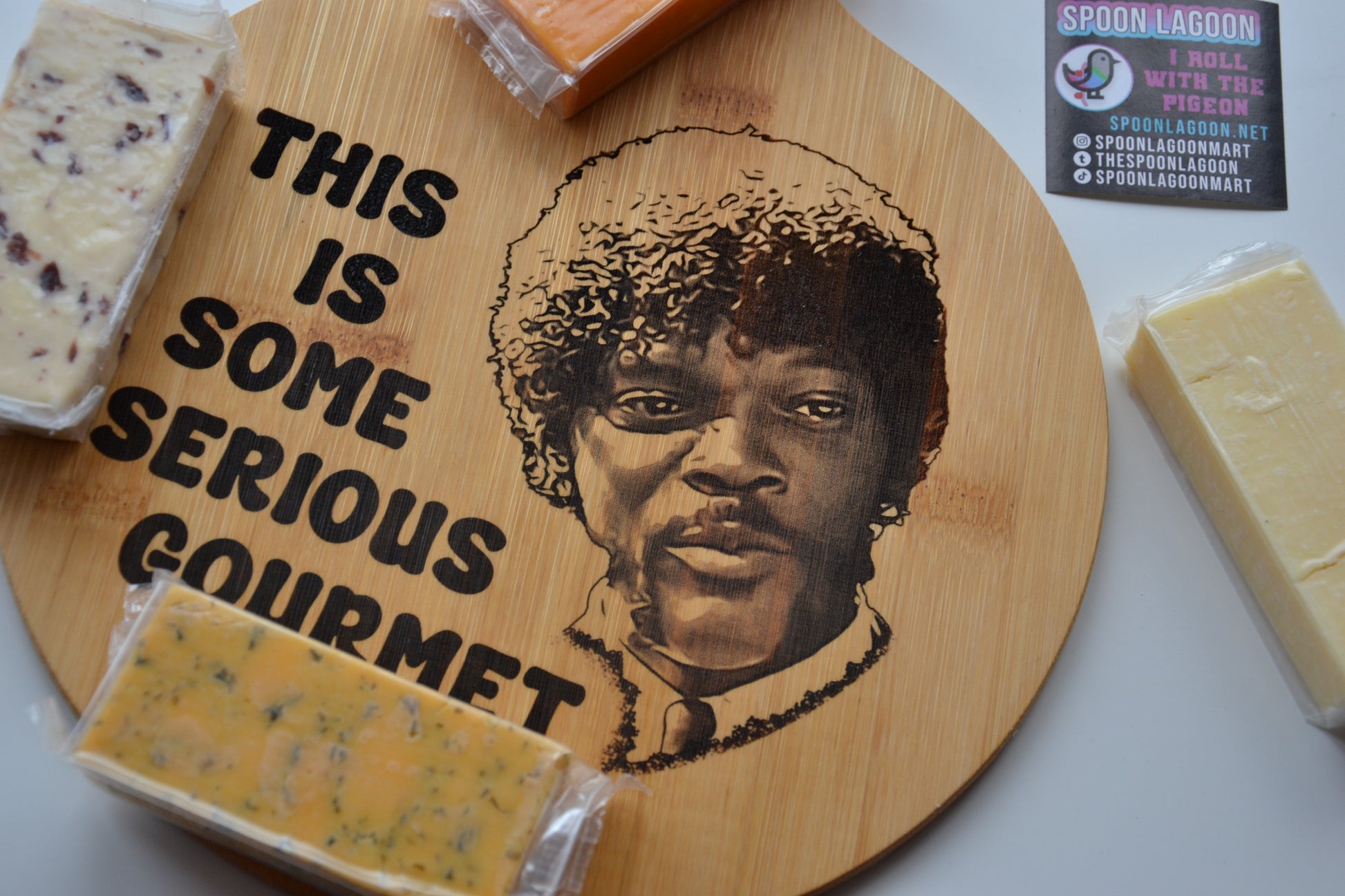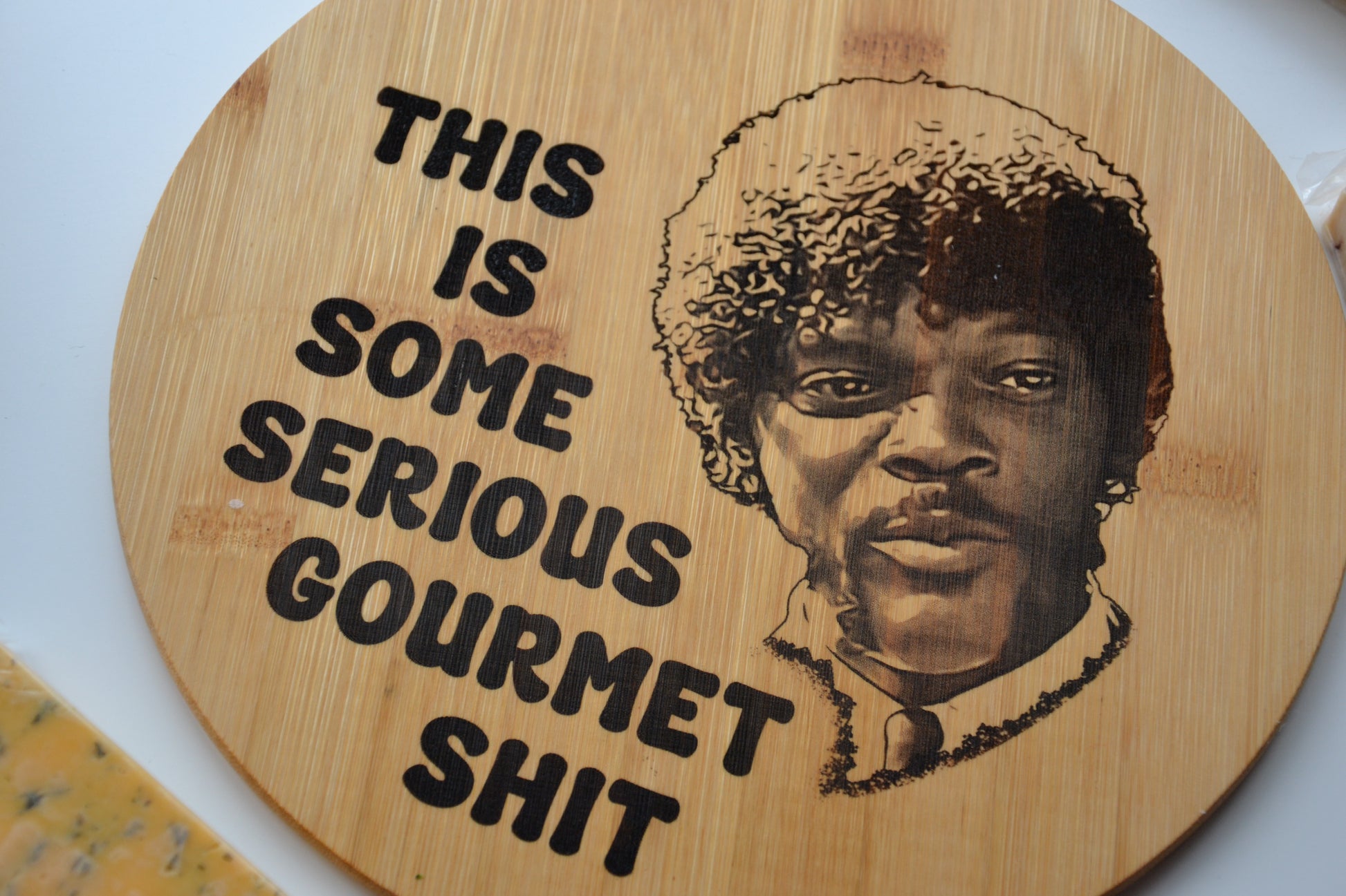 This is some serious gourmet shit - Pulp Fiction inspired wooden serving board // Jules Samuel L Jackson